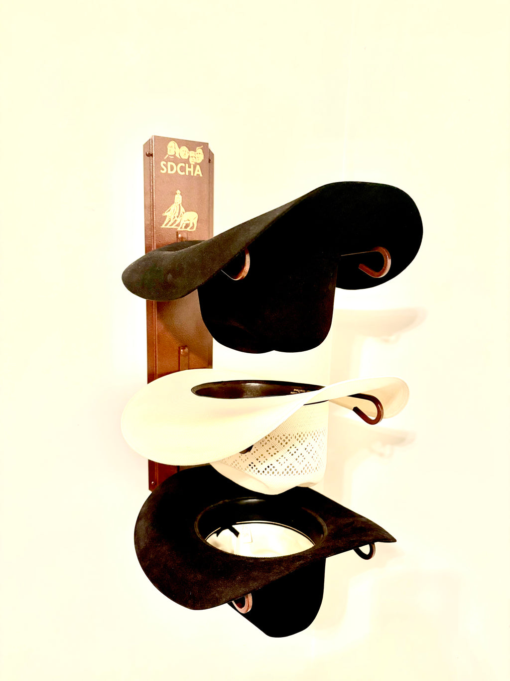 Special Order 3 Tier Classic Black American Made Hat Holder with SDCHA logo on top in gold(Custom Order No Returns)